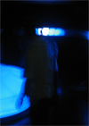 用手掌按下牆上的作品,根據按壓力度,藍光的寬度會變長或變短。地板上的作品用力壓,則藍光會強烈的變成綠色,輕壓,則藍光會淡淡的變成綠色。